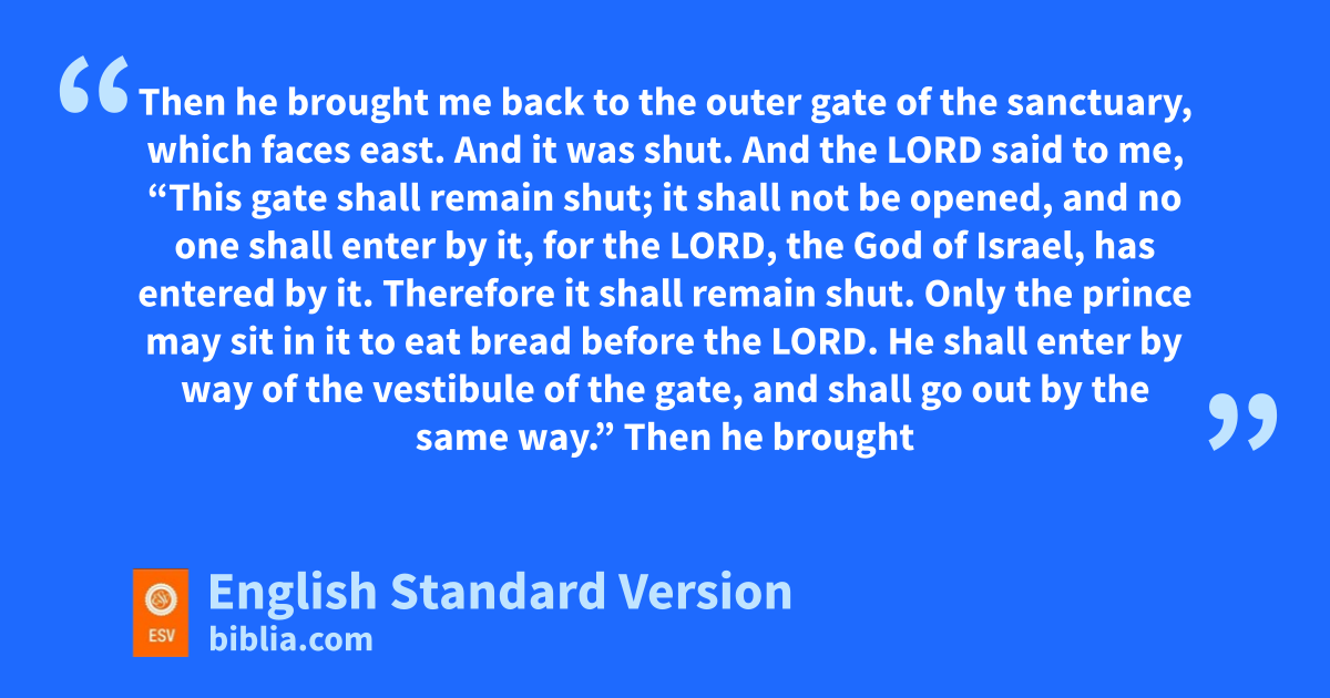 44 Then he brought me wback to the outer gate of the sanctuary, xwhich faces east. And it was shut. 2 And the Lord said to me, “This gate shall remain shut; it shall not be opened, and no one shall enter by it, for ythe Lord, the God of Israel, has entered by it. Therefore it shall remain shut. 3 Only zthe prince may sit in it ato eat bread before the Lord. He bshall enter by way of the vestibule of the gate, and shall go out by the same way.”