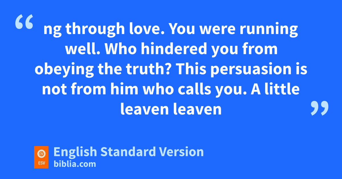 7 gYou were running well. Who hindered you from obeying hthe truth? 8 This persuasion is not from ihim who calls you. 9 jA little leaven leavens the whole lump. 10 kI have confidence in the Lord that you will ltake no other view, and mthe one who is troubling you will bear the penalty, whoever he is. 11 But if I, brothers,2 still preach3 circumcision, nwhy am I still being persecuted? In that case othe offense of the cross has been removed. 12 I wish pthose who unsettle you would emasculate themselves!