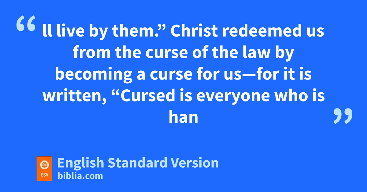 10 For all who rely on works of the law are munder a curse; for it is written, n“Cursed be everyone who does not oabide by all things written in the Book of the Law, and do them.” 11 Now it is evident that pno one is justified before God by the law, for q“The righteous shall live by faith.”4 12 But the law is not of faith, rather r“The one who does them shall live by them.” 13 Christ sredeemed us from the curse of the law by becoming a curse for us—for it is written, t“Cursed is everyone who is hanged uon a tree”— 14 so that in Christ Jesus the blessing of Abraham might vcome to the Gentiles, so that wwe might receive xthe promised Spirit5 through faith.