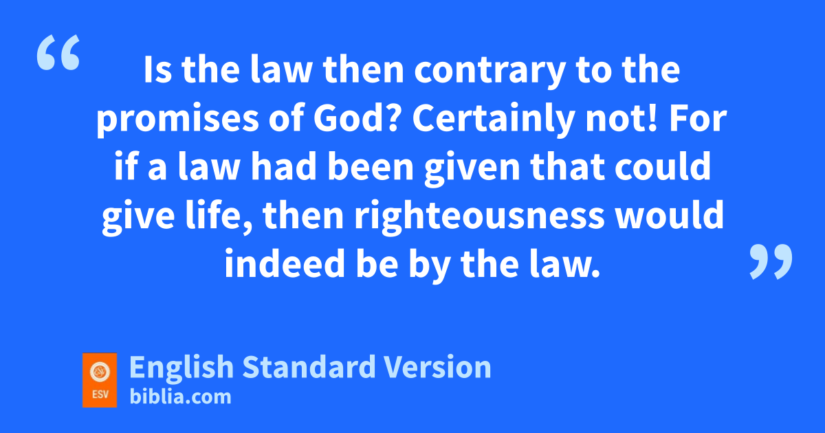 21 Is the law then contrary to the promises of God? Certainly not! For mif a law had been given that could give life, then righteousness would indeed be by the law. 22 But the Scripture nimprisoned everything under sin, so that othe promise by faith in Jesus Christ might be given pto those who believe.