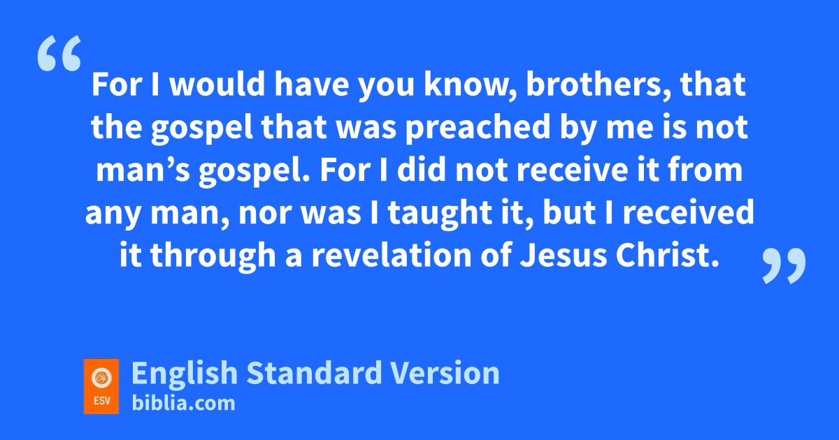11 For uI would have you know, brothers, that vthe gospel that was preached by me is not man’s gospel.3 12 wFor I did not receive it from any man, nor was I taught it, but I received it xthrough a revelation of Jesus Christ. 13 For you have heard of ymy former life in Judaism, how zI persecuted the church of God violently and tried to destroy it. 14 And I was advancing in Judaism beyond many of my own age among my people, so extremely azealous was I for bthe traditions of my fathers. 15 But when he cwho had set me apart dbefore I was born,4 and who ecalled me by his grace, 16 was pleased to reveal his Son to5 me, in order fthat I might preach him among the Gentiles, I did not immediately consult with anyone;6 17 nor did I go up to Jerusalem to those who were apostles before me, but I went away into Arabia, and returned again to Damascus.