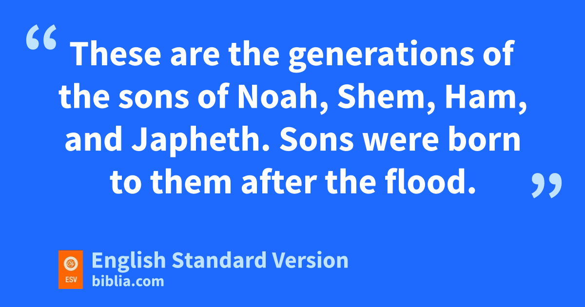 10 These are the generations of the sons of Noah, Shem, Ham, and Japheth. Sons were born to them after the flood.