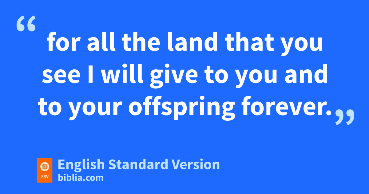 14 The Lord said to Abram, after Lot had separated from him, “Lift up your eyes and look from the place where you are, onorthward and southward and eastward and westward, 15 for all the land that you see I will give pto you and qto your offspring forever. 16 rI will make your offspring as the dust of the earth, so that if one can count the dust of the earth, your offspring also can be counted. 17 Arise, walk through the length and the breadth of the land, for I will give it to you.” 18 So Abram moved his tent and came and ssettled by the toaks2 of Mamre, which uare at Hebron, and there he built an altar to the Lord.