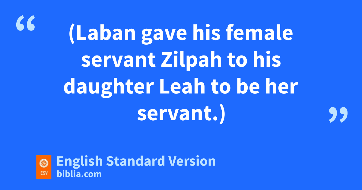 21 Then Jacob said to Laban, “Give me my wife that I may go in to her, for my time is completed.” 22 So Laban gathered together all the people of the place and rmade a feast. 23 But in the evening he took his daughter Leah and brought her to Jacob, and he went in to her. 24 (Laban gave2 shis female servant Zilpah to his daughter Leah to be her servant.) 25 And in the morning, behold, it was Leah! And Jacob said to Laban, “What is this you have done to me? Did I not serve with you for Rachel? Why then have you deceived me?” 26 Laban said, “It is not so done in our country, to give the younger before the firstborn. 27 tComplete the week of this one, and we will give you the other also in return for serving me another seven years.” 28 Jacob did so, and completed her week. Then Laban gave him his daughter Rachel to be his wife. 29 (Laban gave uhis female servant Bilhah to his daughter Rachel to be her servant.) 30 So Jacob went in to Rachel also, and he loved Rachel more than Leah, and served Laban vfor another seven years.