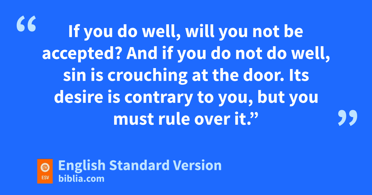 4 Now Adam knew Eve his wife, and she conceived and bore Cain, saying, “I have gotten1 a man with the help of the Lord.” 2 And again, she bore his brother Abel. Now Abel was a keeper of sheep, and Cain a worker of the ground. 3 In the course of time Cain brought to the Lord an offering of uthe fruit of the ground, 4 and Abel also brought of vthe firstborn of his flock and of their fat portions. And the Lord whad regard for Abel and his offering, 5 but xfor Cain and his offering he had no regard. So Cain was very angry, and his face fell. 6 The Lord said to Cain, “Why are you angry, and why has your face fallen? 7 yIf you do well, will you not be accepted?2 And if you do not do well, sin is crouching at the door. zIts desire is contrary to3 you, but you must rule over it.”