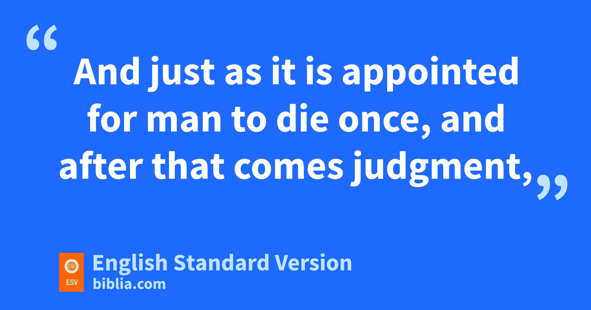 23 Thus it was necessary for gthe copies of the heavenly things to be purified with these rites, but the heavenly things themselves with better sacrifices than these. 24 For Christ has entered, not into holy places hmade with hands, which are copies of the true things, but into heaven itself, now to appear in the presence of God ion our behalf. 25 Nor was it to offer himself repeatedly, as jthe high priest enters kthe holy places every year with blood not his own, 26 for then he would have had to suffer repeatedly since the foundation of the world. But as it is, lhe has appeared monce for all nat the end of the ages to put away sin by the sacrifice of himself. 27 And just as oit is appointed for man to die once, and pafter that comes judgment, 28 so Christ, having been offered once qto bear the sins of rmany, will appear sa second time, tnot to deal with sin but to save those who are eagerly uwaiting for him.