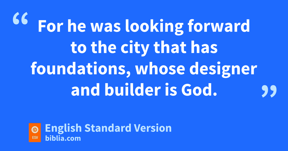 8 By faith qAbraham obeyed when he was called to go out to a place rthat he was to receive as an inheritance. And he went out, not knowing where he was going. 9 By faith he went to live in sthe land of promise, as in a foreign land, tliving in tents uwith Isaac and Jacob, heirs with him of the same promise. 10 For he was looking forward to vthe city that has wfoundations, xwhose designer and builder is God. 11 By faith ySarah herself received power to conceive, even when she was past the age, since she considered zhim faithful who had promised. 12 Therefore from one man, and ahim as good as dead, were born descendants bas many as the stars of heaven and as many as the innumerable grains of sand by the seashore.