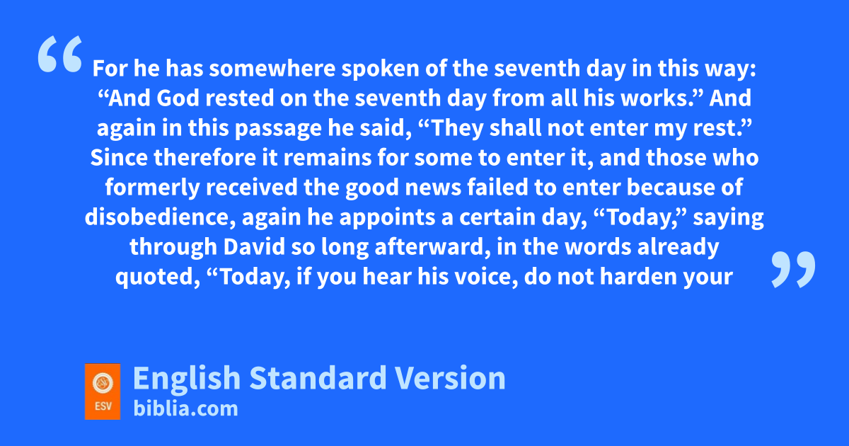 6 Since therefore it remains for some to enter it, and those who formerly received the good news sfailed to enter because of disobedience, 7 again he appoints a certain day, “Today,” saying through David so long afterward, in the words already quoted,