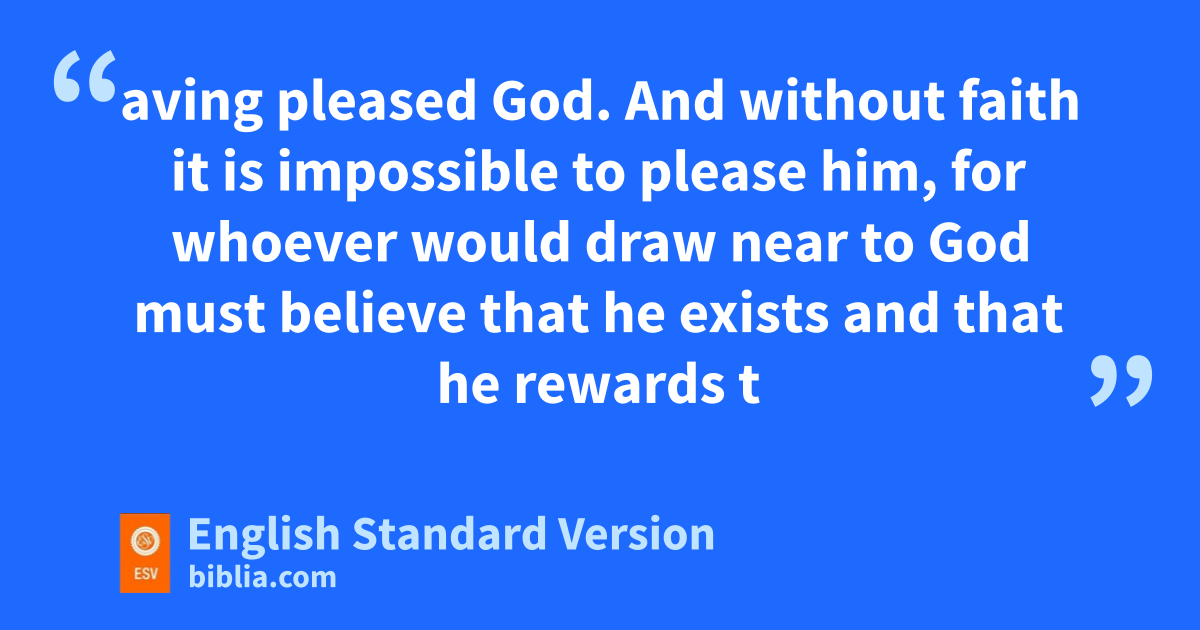 4 By faith hAbel offered to God ia more acceptable sacrifice than Cain, through which he was commended as righteous, God commending him by accepting his gifts. And jthrough his faith, though he died, he kstill speaks. 5 By faith lEnoch was taken up so that he should not see death, and he was not found, because God had taken him. Now before he was taken he was commended as having pleased God. 6 And without faith it is impossible to please him, for whoever would draw near to God mmust believe that he exists and mthat he rewards those who seek him. 7 By faith nNoah, being warned by God concerning oevents as yet unseen, in reverent fear constructed an ark for the saving of his household. By this he condemned the world and became an heir of pthe righteousness that comes by faith.