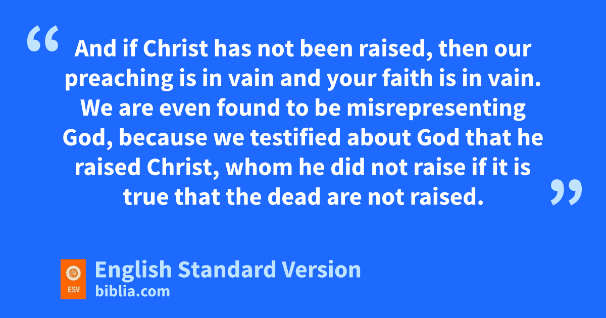 12 Now if Christ is proclaimed as raised from the dead, zhow can some of you say that there is no resurrection of the dead? 13 But if there is no resurrection of the dead, athen not even Christ has been raised. 14 And if Christ has not been raised, then our preaching is in vain and your faith is in vain. 15 We are even found to be misrepresenting God, because we testified about God that bhe raised Christ, whom he did not raise if it is true that the dead are not raised. 16 For if the dead are not raised, not even Christ has been raised. 17 And if Christ has not been raised, your faith is futile and cyou are still in your sins. 18 Then those also who dhave fallen asleep in Christ have perished. 19 If in Christ we have hope2 in this life only, ewe are of all people most to be pitied.