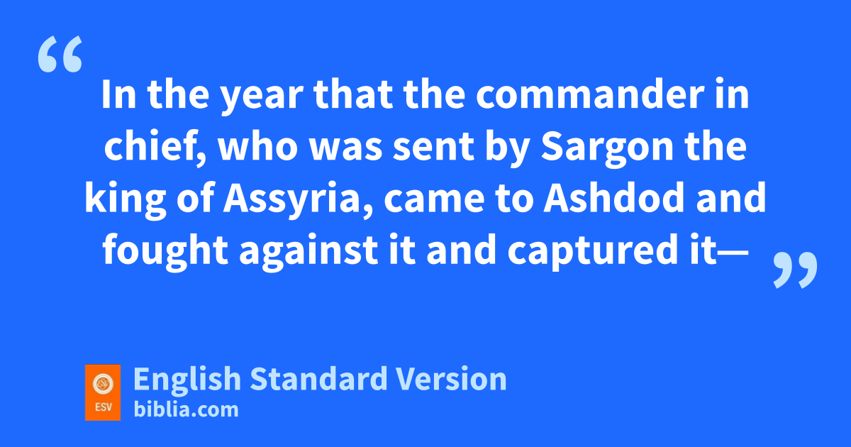 20 In the year that lthe commander in chief, who was sent by Sargon the king of Assyria, came to mAshdod and fought against it and captured it— 2 at that time the Lord spoke by Isaiah the son of Amoz, saying, “Go, and loose the sackcloth from your waist and take off your sandals from your feet,” and he did so, walking nnaked and barefoot.