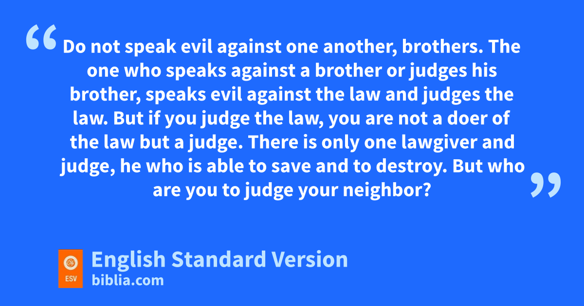 11 mDo not speak evil against one another, brothers.4 The one who speaks against a brother or njudges his brother, speaks evil against the law and judges the law. But if you judge the law, you are not a doer of the law but a judge. 12 There is only oone lawgiver and pjudge, he who is able to save and qto destroy. But rwho are you to judge your neighbor?