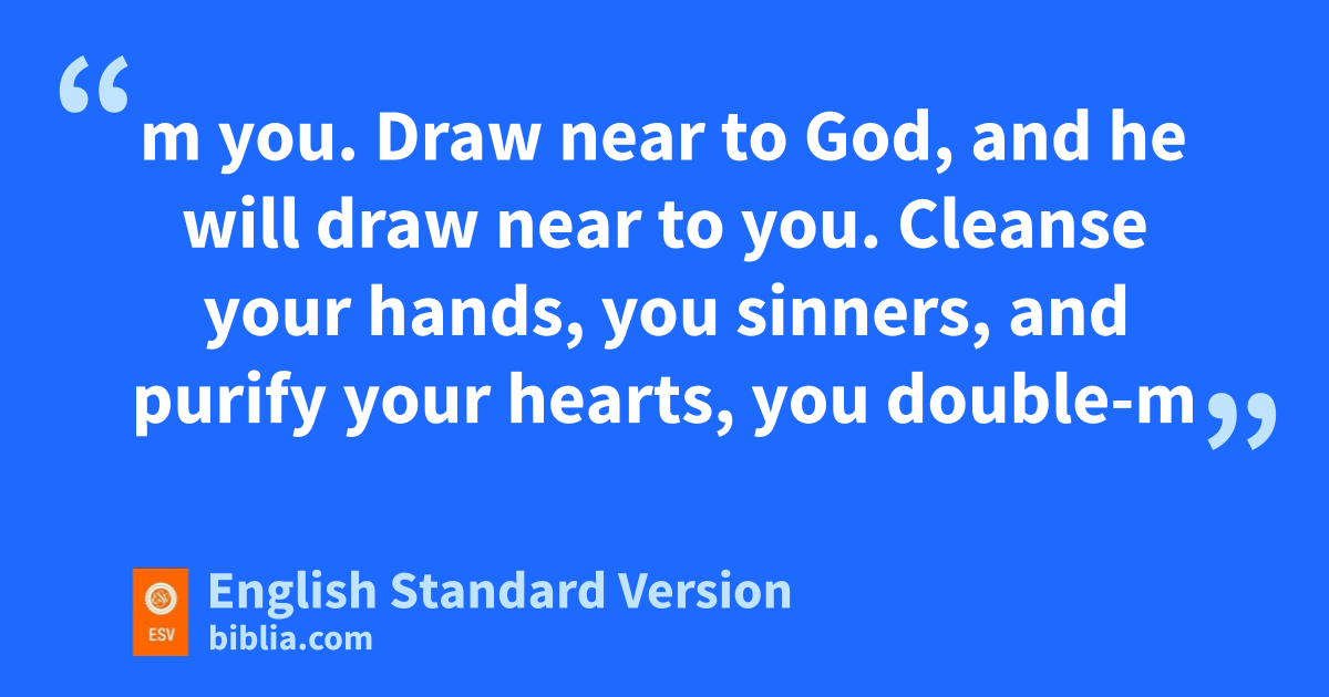 4 What causes quarrels and what causes fights among you? Is it not this, that your passions1 are yat war within you?2 2 You desire and do not have, so you murder. You covet and cannot obtain, so you fight and quarrel. You do not have, because you do not ask. 3 You ask and do not receive, because you ask zwrongly, to spend it on your passions. 4 aYou adulterous people!3 Do you not know that friendship with the world is enmity with God? bTherefore whoever wishes to be a friend of the world makes himself an enemy of God. 5 Or do you suppose it is to no purpose that the Scripture says, “He yearns jealously over the spirit cthat he has made to dwell in us”? 6 But dhe gives more grace. Therefore it says, e“God opposes the proud but dgives grace to the humble.” 7 Submit yourselves therefore to God. fResist the devil, and he will flee from you. 8 gDraw near to God, and he will draw near to you. hCleanse your hands, you sinners, and ipurify your hearts, jyou double-minded. 9 kBe wretched and mourn and weep. Let your laughter be turned to mourning and your joy to gloom. 10 lHumble yourselves before the Lord, and he will exalt you.