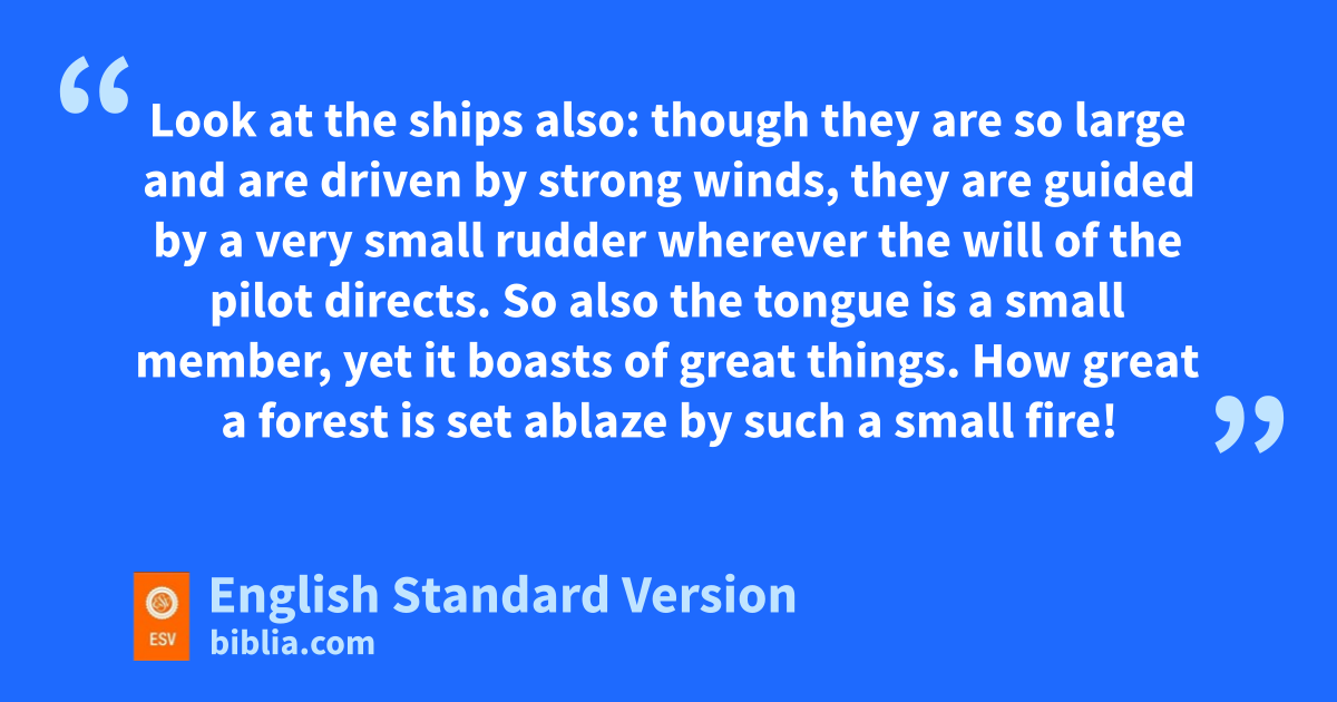 3 cNot many of you should become teachers, my brothers, for you know that we who teach will be judged with greater strictness. 2 For dwe all stumble in many ways. And if anyone does not stumble in what he says, ehe is a perfect man, fable also to bridle his whole body. 3 If we put gbits into the mouths of horses so that they obey us, we guide their whole bodies as well. 4 Look at the ships also: though they are so large and are driven by strong winds, they are guided by a very small rudder wherever the will of the pilot directs. 5 So also the tongue is a small member, yet hit boasts of great things.