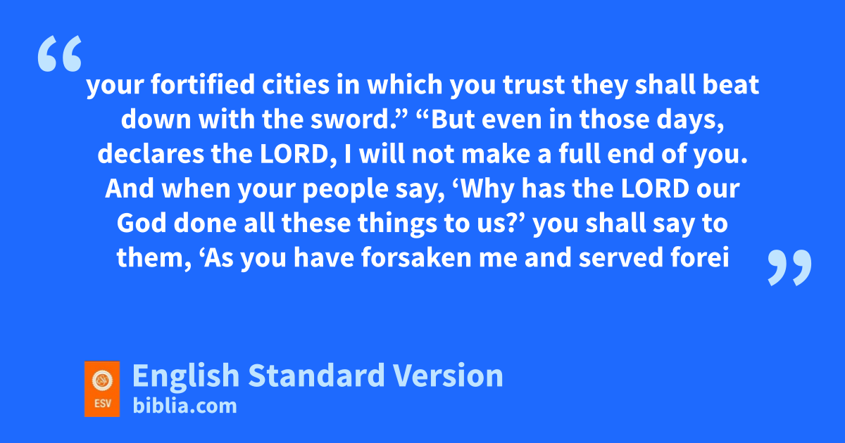 18 “But even in those days, declares the Lord, uI will not make a full end of you. 19 And when your people say, g‘Why has the Lord our God done all these things to us?’ you shall say to them, ‘As you have forsaken me and served foreign gods in your land, hso you shall serve foreigners in a land that is not yours.’ ”