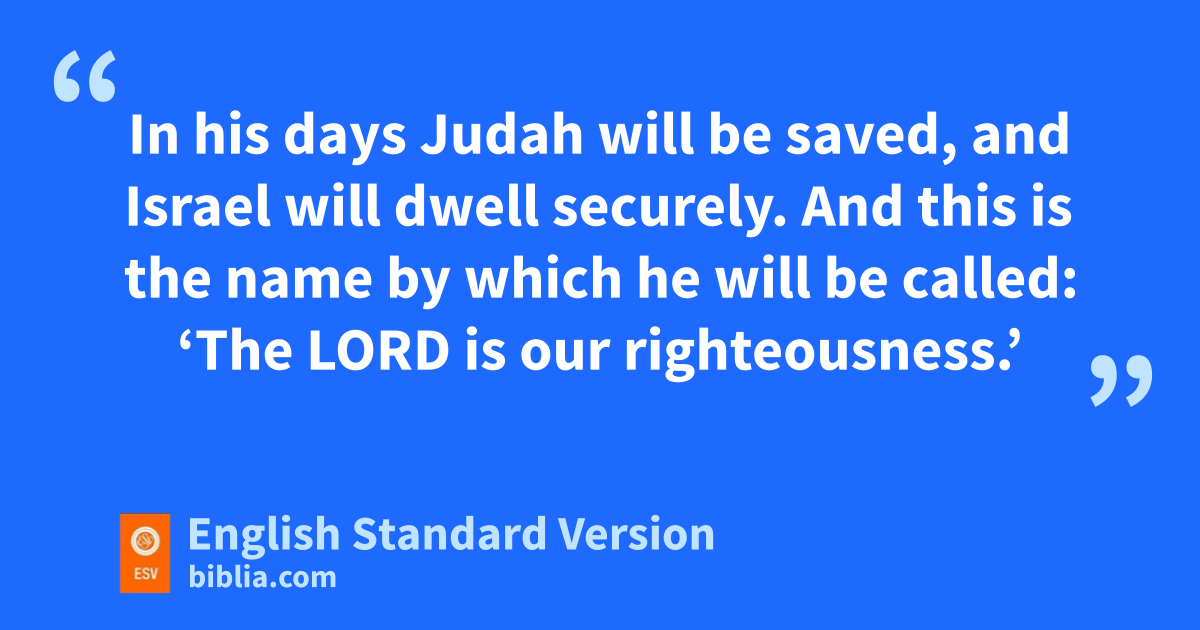 5 a“Behold, the days are coming, declares the Lord, when I will raise up for David a righteous bBranch, and che shall reign as king and deal wisely, and shall execute justice and righteousness in the land. 6 In his days Judah will be saved, and dIsrael will edwell securely. And this is the name by which he will be called: f‘The Lord is our righteousness.’