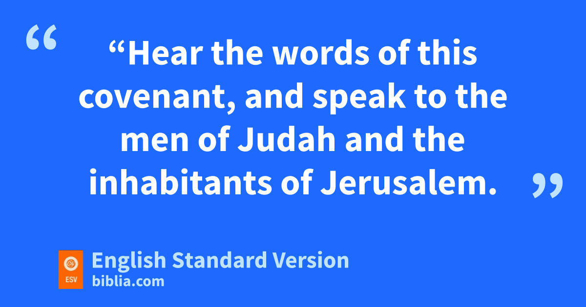 11 The word that came to Jeremiah from the Lord: 2 a“Hear the words of this covenant, and speak to the men of Judah and the inhabitants of Jerusalem. 3 You shall say to them, Thus says the Lord, the God of Israel: bCursed be the man who does not hear the words of this covenant 4 that I commanded your fathers when I brought them out of the land of Egypt, cfrom the iron furnace, saying, dListen to my voice, and do all that I command you. dSo shall you be my people, and I will be your God, 5 ethat I may confirm the oath that I swore to your fathers, fto give them a land flowing with milk and honey, as at this day.” Then I answered, “So be it, Lord.”