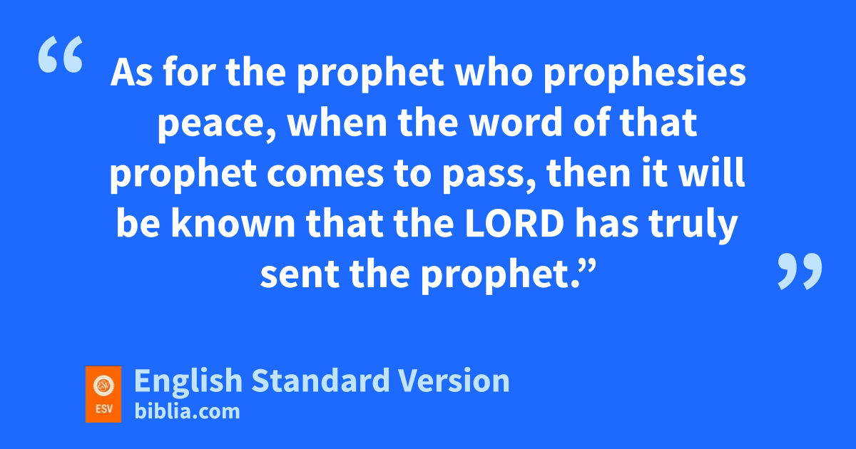 5 Then the prophet Jeremiah spoke to Hananiah the prophet in the presence of the priests and all the people who were standing in the house of the Lord, 6 and the prophet Jeremiah said, u“Amen! May the Lord do so; may the Lord make the words that you have prophesied come true, and bring back to this place from Babylon the vessels of the house of the Lord, and all the exiles. 7 Yet hear now this word that I speak in your hearing and in the hearing of all the people. 8 vThe prophets who preceded you and me from ancient times prophesied war, famine, and pestilence against many countries and great kingdoms. 9 wAs for the prophet who prophesies peace, when the word of that prophet comes to pass, then it will be known that the Lord has truly sent the prophet.”