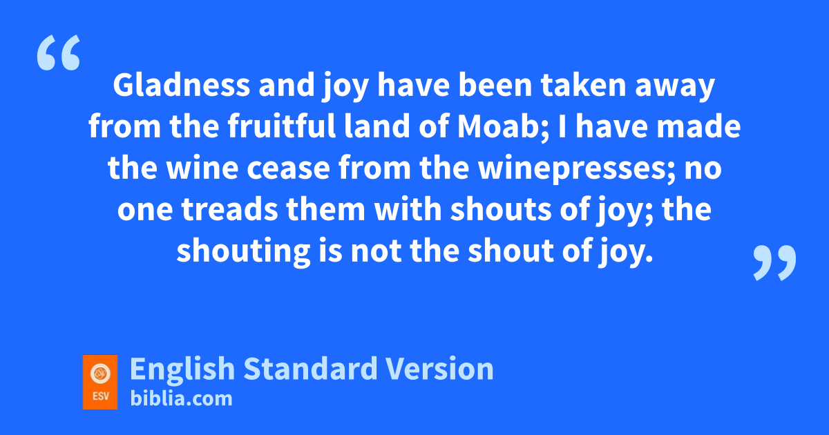 34 c“From the outcry at Heshbon even to Elealeh, as far as Jahaz they utter their voice, from Zoar to dHoronaim and Eglath-shelishiyah. For the waters of Nimrim also have become desolate. 35 And I will bring to an end in Moab, declares the Lord, him who offers sacrifice in ethe high place and makes offerings to his god. 36 Therefore my heart moans for Moab like a flute, and my heart moans like a flute for the men of fKir-hareseth. gTherefore the riches they gained have perished.