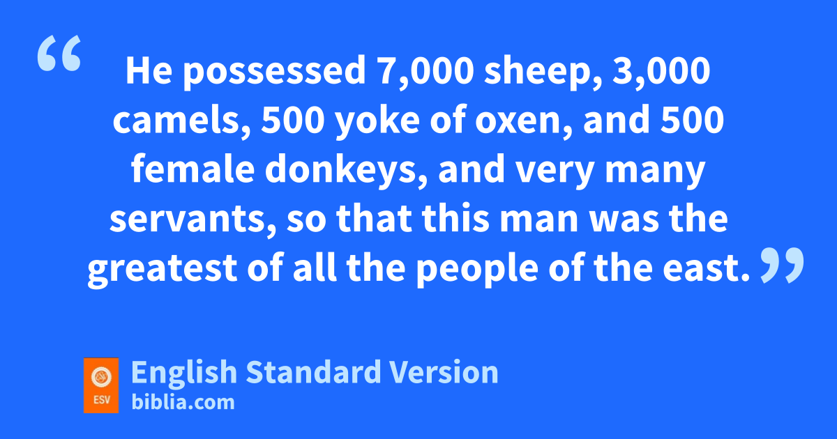1 There was a man in the land of aUz whose name was bJob, and that man was cblameless and upright, one who dfeared God and eturned away from evil. 2 There were born to him fseven sons and three daughters. 3 He possessed 7,000 sheep, 3,000 camels, 500 yoke of oxen, and 500 female donkeys, and very many servants, so that this man was the greatest of all gthe people of the east. 4 His sons used to go and hold a feast in the house of each one on his day, and they would send and invite their three sisters to eat and drink with them. 5 And when the days of the feast had run their course, Job would send and hconsecrate them, and he would rise early in the morning and ioffer burnt offerings according to the number of them all. For Job said, “It may be that my children have sinned, and jcursed1 God in their hearts.” Thus Job did continually.