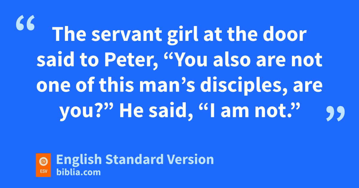 15 cSimon Peter followed Jesus, and so did another disciple. Since that disciple was known to the high priest, he entered with Jesus into the courtyard of the high priest, 16 dbut Peter stood outside at the door. So the other disciple, who was known to the high priest, went out and spoke to the servant girl who kept watch at the door, and brought Peter in. 17 eThe servant girl at the door said to Peter, “You also are not one of this man’s disciples, are you?” He said, “I am not.” 18 Now the servants5 and officers had made a charcoal fire, because it was cold, and they were standing and warming themselves. fPeter also was with them, standing and warming himself.