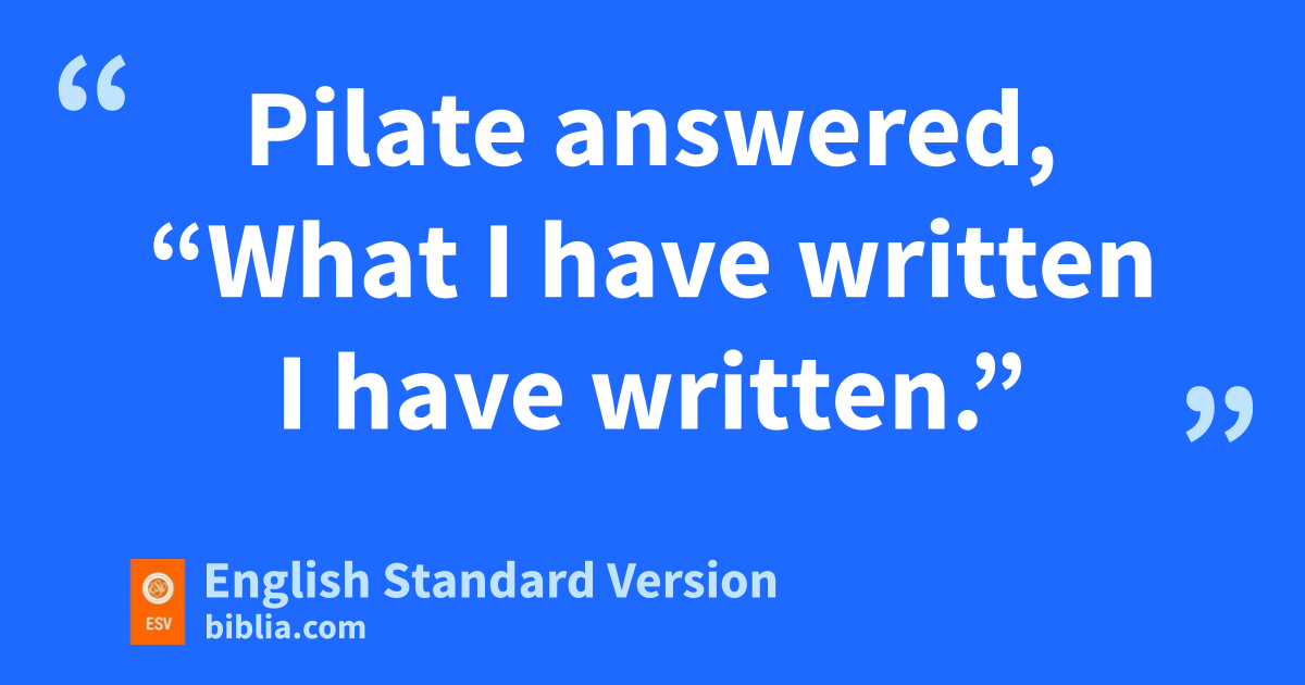 So they took Jesus, 17 and ohe went out, pbearing his own cross, to the place called The Place of a Skull, which in Aramaic is called Golgotha. 18 qThere they crucified him, and with him two others, one on either side, and Jesus between them. 19 Pilate ralso wrote an inscription and put it on the cross. It read, “Jesus of Nazareth, the King of the Jews.” 20 Many of the Jews read this inscription, for sthe place where Jesus was crucified was near the city, and it was written in Aramaic, in Latin, and in Greek. 21 So the chief priests of the Jews said to Pilate, “Do not write, ‘The King of the Jews,’ but rather, ‘This man said, I am King of the Jews.’ ” 22 Pilate answered, t“What I have written I have written.”