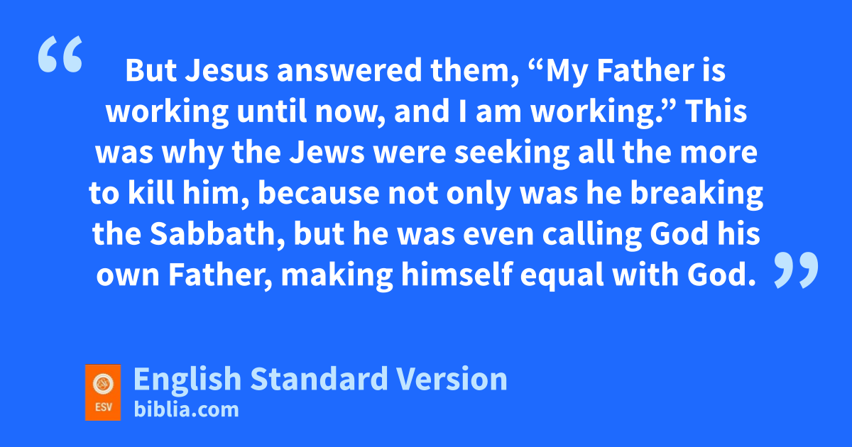 sNow that day was the Sabbath. 10 So the Jews4 said to the man who had been healed, “It is the Sabbath, and tit is not lawful for you to take up your bed.” 11 But he answered them, “The man who healed me, that man said to me, ‘Take up your bed, and walk.’ ” 12 They asked him, “Who is the man who said to you, ‘Take up your bed and walk’?” 13 Now the man who had been healed did not know who it was, for uJesus had withdrawn, as there was a crowd in the place. 14 Afterward Jesus found him in the temple and said to him, “See, you are well! vSin no more, wthat nothing worse may happen to you.” 15 The man went away and told the Jews that it was Jesus who had healed him. 16 And this was why the Jews xwere persecuting Jesus, ybecause he was doing these things on the Sabbath. 17 But Jesus answered them, “My Father is working until now, and I am working.”
