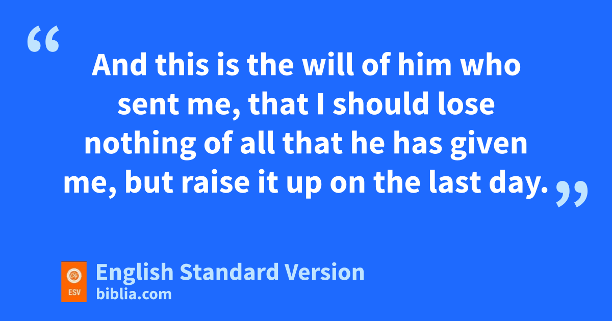 35 Jesus said to them, x“I am the bread of life; ywhoever comes to me shall not hunger, and whoever believes in me shall never thirst. 36 But I said to you that you have seen me and yet do not believe. 37 zAll that athe Father gives me will come to me, and bwhoever comes to me I will never cast out. 38 For cI have come down from heaven, not to do dmy own will but dthe will of him ewho sent me. 39 And fthis is the will of him who sent me, gthat I should lose nothing of hall that he has given me, but iraise it up on the last day. 40 For this is the will of my Father, that everyone who jlooks on the Son and kbelieves in him lshould have eternal life, and I will raise him up on the last day.”
