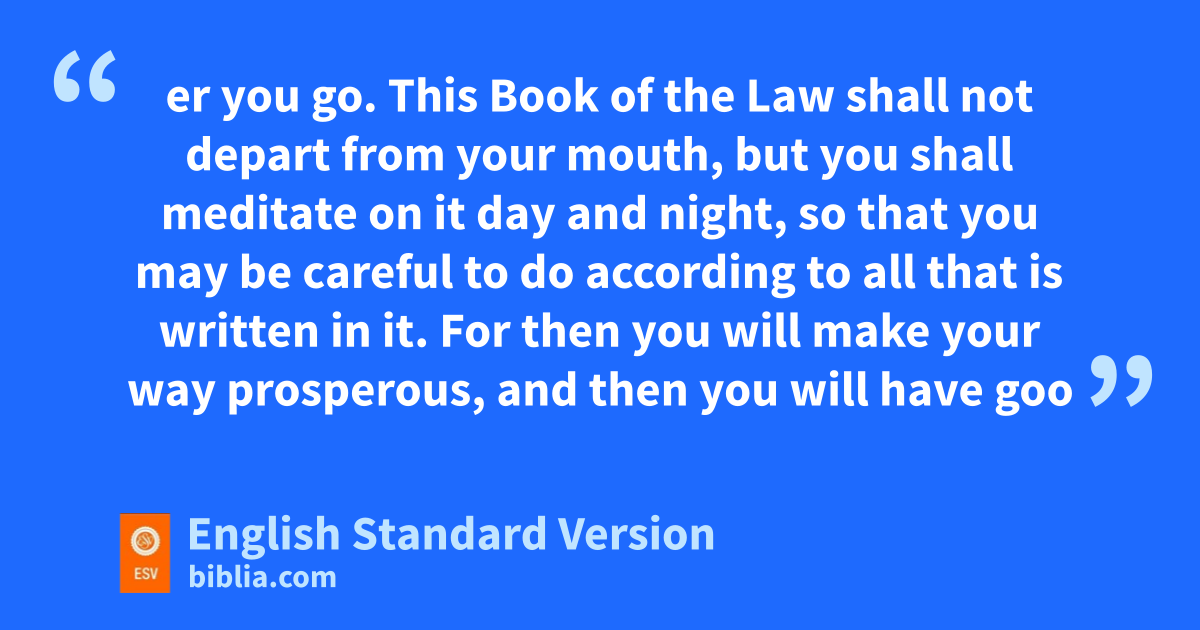1 After the death of Moses the aservant of the Lord, the Lord said to Joshua the son of Nun, Moses’ bassistant, 2 “Moses my servant is dead. Now therefore arise, go over this Jordan, you and all this people, into the land that I am giving to them, to the people of Israel. 3 cEvery place that the sole of your foot will tread upon I have given to you, just as I promised to Moses. 4 dFrom the wilderness and this Lebanon as far as the great river, the river Euphrates, all the land of the Hittites to the Great Sea toward the going down of the sun shall be your territory. 5 eNo man shall be able to stand before you all the days of your life. Just fas I was with Moses, so gI will be with you. hI will not leave you or forsake you. 6 iBe strong and courageous, for you shall cause this people to inherit the land that I swore to their fathers to give them. 7 Only be strong and jvery courageous, being careful to do according to all the law kthat Moses my servant commanded you. lDo not turn from it to the right hand or to the left, that you may have good success1 wherever you go. 8 This Book of the Law shall not depart from your mouth, but myou shall meditate on it day and night, so that you may be careful to do according to all that is written in it. For then you will make your way prosperous, and then you will have good success. 9 Have I not commanded you? nBe strong and courageous. oDo not be frightened, and do not be dismayed, for the Lord your God is with you wherever you go.”