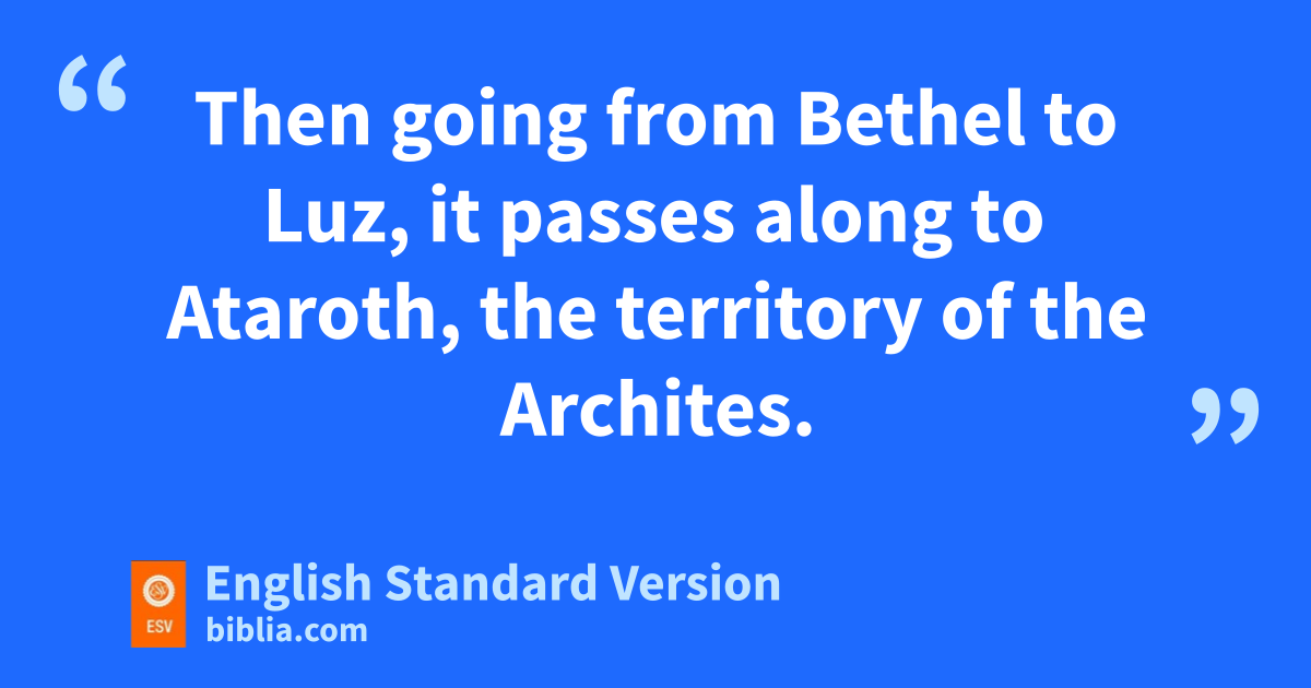 16 The allotment of the people of Joseph went from the Jordan by Jericho, east of the waters of Jericho, iinto the wilderness, going up from Jericho into the hill country to Bethel. 2 Then jgoing from Bethel to Luz, it passes along to Ataroth, the territory of the Archites. 3 Then it goes down westward to the territory of the Japhletites, as far as the territory of Lower kBeth-horon, then to lGezer, and it ends at the sea.