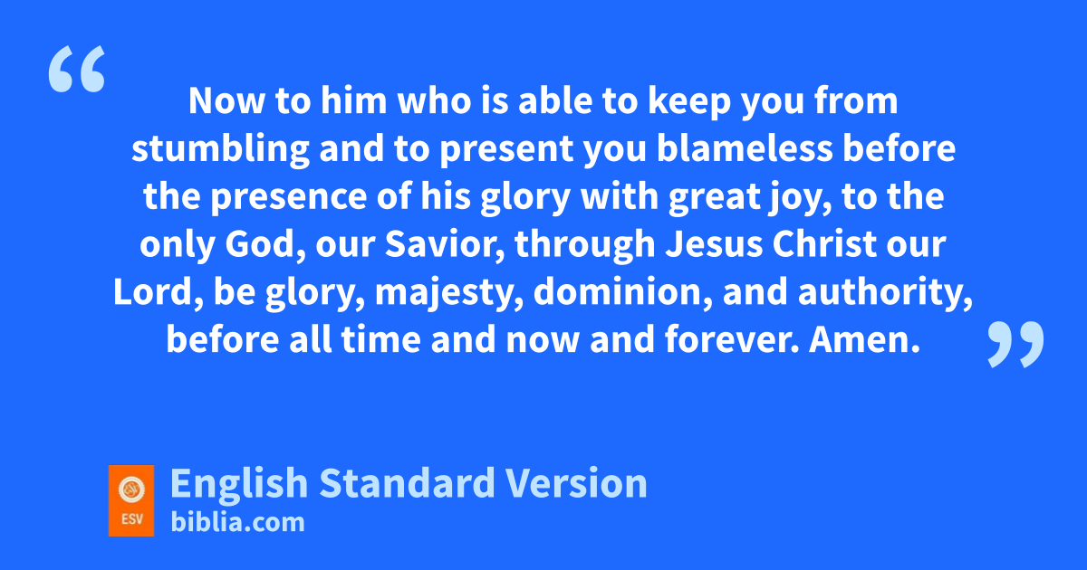 24 eNow to him who is able fto keep you from stumbling and gto present you hblameless before the presence of his glory with great joy, 25 to ithe only God, our Savior, through Jesus Christ our Lord, jbe glory, majesty, dominion, and authority, before all time8 and now and forever. Amen.