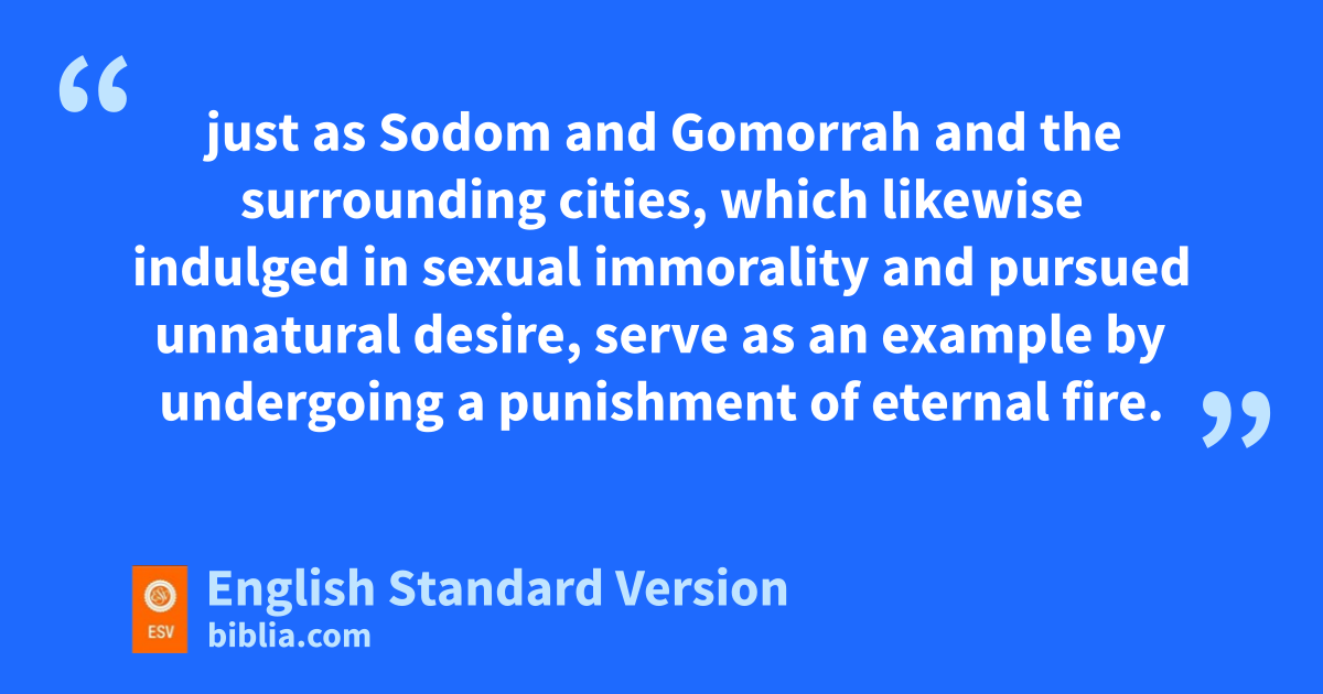 5 Now I want mto remind you, although you once fully knew it, that nJesus, who saved3 a people out of the land of Egypt, oafterward destroyed those who did not believe. 6 And pthe angels who did not stay within their own position of authority, but left their proper dwelling, he has kept in eternal chains under gloomy darkness until the judgment of the great day— 7 just as qSodom and Gomorrah and rthe surrounding cities, which likewise indulged in sexual immorality and spursued unnatural desire,4 serve as an example by undergoing a punishment of eternal fire.