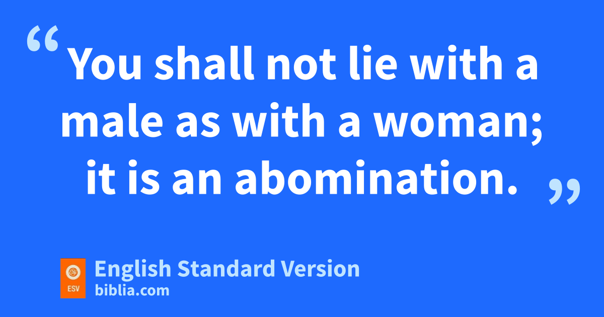 19 c“You shall not approach a woman to uncover her nakedness while she is in her menstrual uncleanness. 20 dAnd you shall not lie sexually with your neighbor’s wife and so make yourself unclean with her. 21 You shall not give any of your children to eoffer them2 to fMolech, and so gprofane the name of your God: I am the Lord. 22 hYou shall not lie with a male as with a woman; it is an abomination. 23 iAnd you shall not lie with any animal and so make yourself unclean with it, neither shall any woman give herself to an animal to lie with it: it is jperversion.