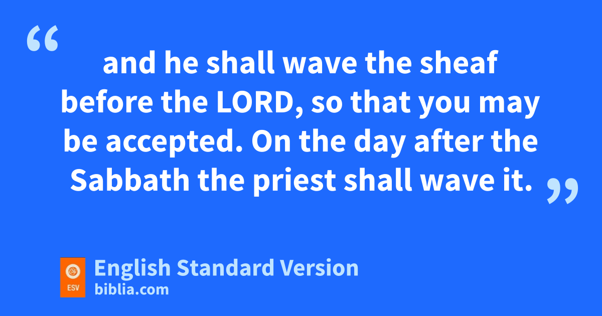 9 And the Lord spoke to Moses, saying, 10 “Speak to the people of Israel and say to them, wWhen you come into the land that I give you and reap its harvest, you shall bring the sheaf of xthe firstfruits of your harvest to the priest, 11 and he shall ywave the sheaf before the Lord, so that you may be accepted. On the day after the Sabbath the priest shall wave it. 12 And on the day when you ywave the sheaf, you shall offer a zmale lamb a year old without blemish as a burnt offering to the Lord. 13 aAnd the grain offering with it shall be two tenths of an ephah2 of fine flour mixed with oil, a food offering to the Lord with a pleasing aroma, band the drink offering with it shall be of wine, a fourth of a hin.3 14 And you shall eat neither bread nor grain cparched or cfresh until this same day, until you have brought the offering of your God: it is a statute forever throughout your generations in all your dwellings.