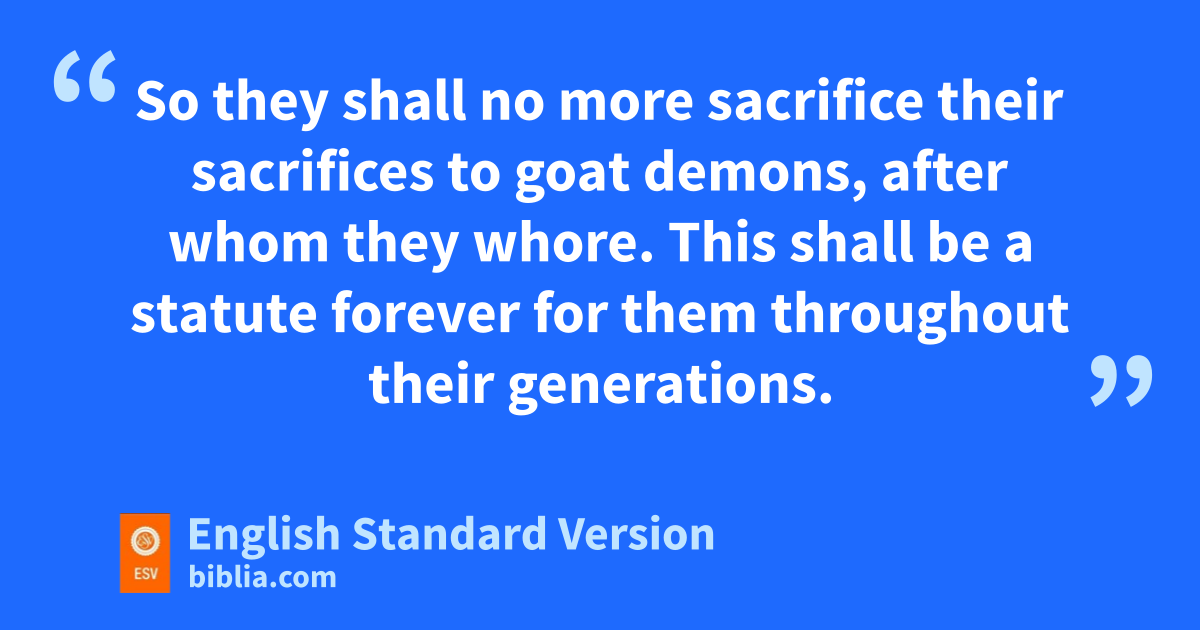 17 And the Lord spoke to Moses, saying, 2 “Speak to Aaron and his sons and to all the people of Israel and say to them, This is the thing that the Lord has commanded. 3 If any one of the house of Israel ukills an ox or a lamb or a goat in the camp, or kills it outside the camp, 4 and vdoes not bring it to the entrance of the tent of meeting to offer it as a gift to the Lord in front of the tabernacle of the Lord, bloodguilt shall be imputed to that man. He has shed blood, and that man wshall be cut off from among his people. 5 This is to the end that the people of Israel may bring their sacrifices that they sacrifice xin the open field, that they may bring them to the Lord, to the priest at the entrance of the tent of meeting, and sacrifice them yas sacrifices of peace offerings to the Lord. 6 And the priest shall ythrow the blood on the altar of the Lord at the entrance of the tent of meeting and burn the fat zfor a pleasing aroma to the Lord. 7 So they shall no more sacrifice their sacrifices to goat demons, after whom they awhore. This shall be a statute forever for them throughout their generations.
