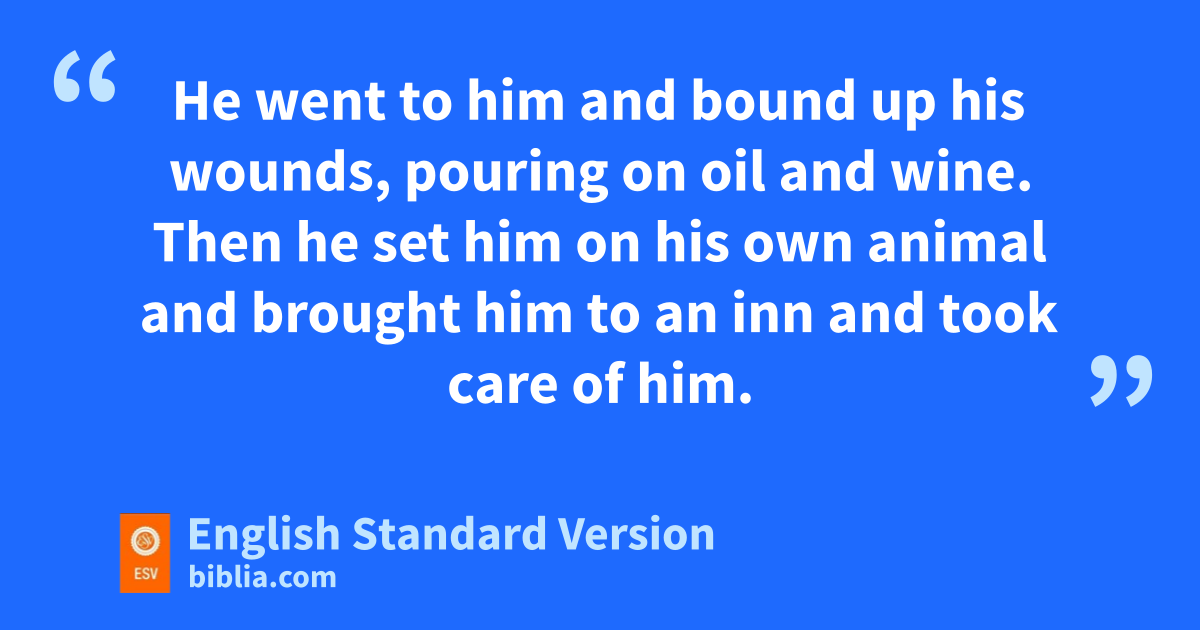 29 But he, vdesiring to justify himself, said to Jesus, “And who is my neighbor?” 30 Jesus replied, “A man wwas going down from Jerusalem to Jericho, and he fell among robbers, who stripped him and beat him and departed, leaving him half dead. 31 Now by chance a xpriest was going down that road, and when he saw him he passed by on the other side. 32 So likewise xa Levite, when he came to the place and saw him, passed by on the other side. 33 But a ySamaritan, as he journeyed, came to where he was, and when he saw him, he had compassion. 34 He went to him and zbound up his wounds, pouring on zoil and wine. Then he set him on his own animal and brought him to an inn and took care of him. 35 And the next day he took out two adenarii3 and gave them to the innkeeper, saying, ‘Take care of him, and whatever more you spend, I will repay you when I come back.’ 36 Which of these three, do you think, proved to be a neighbor to the man who fell among the robbers?” 37 He said, “The one who showed him mercy.” And Jesus said to him, “You go, and do likewise.”