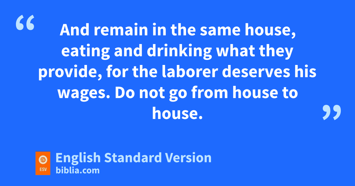 10 After this the Lord appointed xseventy-two1 others and ysent them on ahead of him, two by two, into every town and place where he himself was about to go. 2 zAnd he said to them, “The harvest is plentiful, but the laborers are few. aTherefore pray earnestly to the Lord of the harvest to send out laborers into his harvest. 3 Go your way; bbehold, I am sending you out as lambs in the midst of wolves. 4 cCarry no moneybag, no knapsack, no sandals, and dgreet no one on the road. 5 Whatever house you enter, first say, e‘Peace be to this house!’ 6 And if a son of peace is there, your peace will rest upon him. But if not, fit will return to you. 7 And remain in the same house, eating and drinking what they provide, for gthe laborer deserves his wages. Do not go from house to house. 8 Whenever you enter a town and they receive you, eat what is set before you. 9 Heal the sick in it and say to them, h‘The kingdom of God has come near to you.’ 10 But whenever you enter a town and they do not receive you, go into its streets and say, 11 i‘Even the dust of your town that clings to our feet we wipe off against you. Nevertheless know this, that jthe kingdom of God has come near.’ 12 I tell you, kit will be more bearable on lthat day for Sodom than for that town.