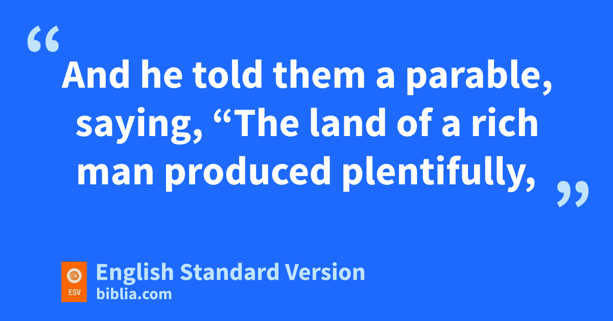 13 sSomeone in the crowd said to him, “Teacher, tell my brother to divide the inheritance with me.” 14 But he said to him, t“Man, uwho made me a judge or arbitrator over you?” 15 And he said to them, v“Take care, and be on your guard against all covetousness, for one’s life does not consist in the abundance of his possessions.” 16 And he told them a parable, saying, w“The land of a rich man produced plentifully, 17 and he thought to himself, x‘What shall I do, for I have nowhere to store my crops?’ 18 And he said, ‘I will do this: I will tear down my ybarns and build larger ones, and there I will store all my grain and my goods. 19 And I will say to my soul, “Soul, you have ample goods laid up zfor many years; relax, aeat, drink, be merry.” ’ 20 But God said to him, b‘Fool! zThis night cyour soul is required of you, and the things you have prepared, dwhose will they be?’ 21 So is the one ewho lays up treasure for himself and is not rich toward God.”