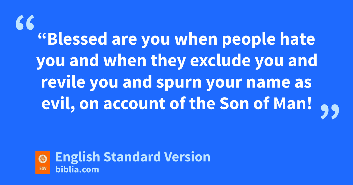 22 “Blessed are you when epeople hate you and when they fexclude you and revile you and gspurn your name as evil, hon account of the Son of Man! 23 iRejoice in that day, and leap for joy, for behold, your reward is great in heaven; for jso their fathers did to the prophets.