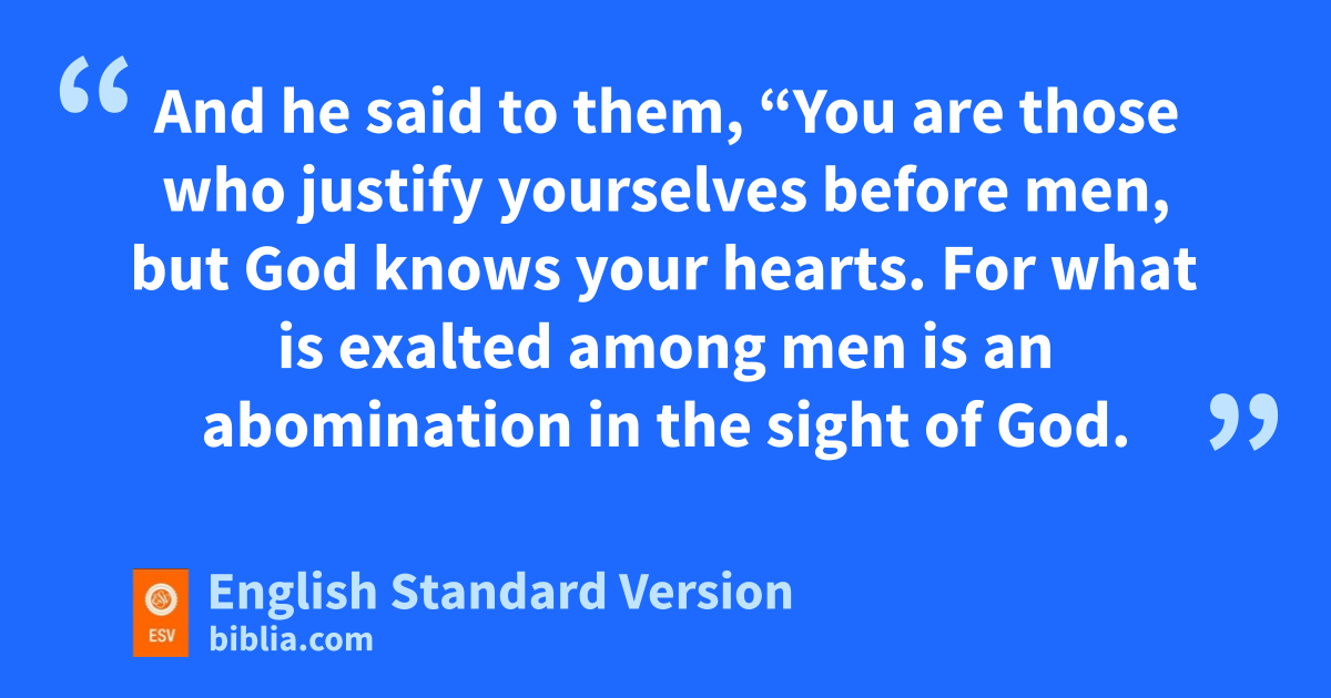 14 tThe Pharisees, who were ulovers of money, heard all these things, and they vridiculed him. 15 And he said to them, “You are those who wjustify yourselves before men, but xGod knows your hearts. For what is exalted among men yis an abomination in the sight of God.
