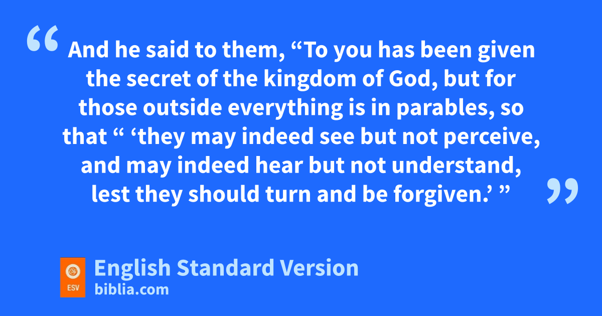 10 And ewhen he was alone, those around him with the twelve asked him about the parables. 11 And he said to them, f“To you has been given gthe secret of the kingdom of God, but for hthose outside everything is in parables, 12 iso that