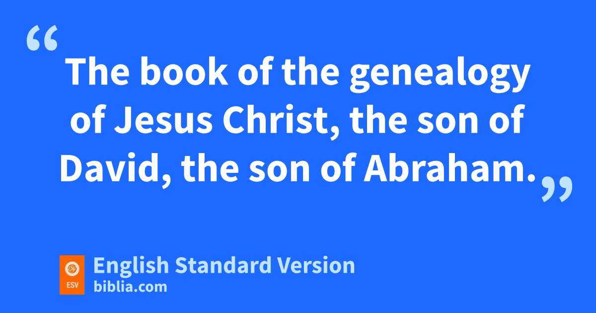 2 dAbraham was the father of Isaac, and eIsaac the father of Jacob, and fJacob the father of Judah and his brothers, 3 and gJudah the father of Perez and Zerah by Tamar, and Perez the father of Hezron, and Hezron the father of Ram,1 4 and Ram the father of Amminadab, and Amminadab the father of Nahshon, and Nahshon the father of Salmon, 5 and Salmon the father of Boaz by hRahab, and Boaz the father of Obed by Ruth, and Obed the father of Jesse, 6 and iJesse the father of David the king.