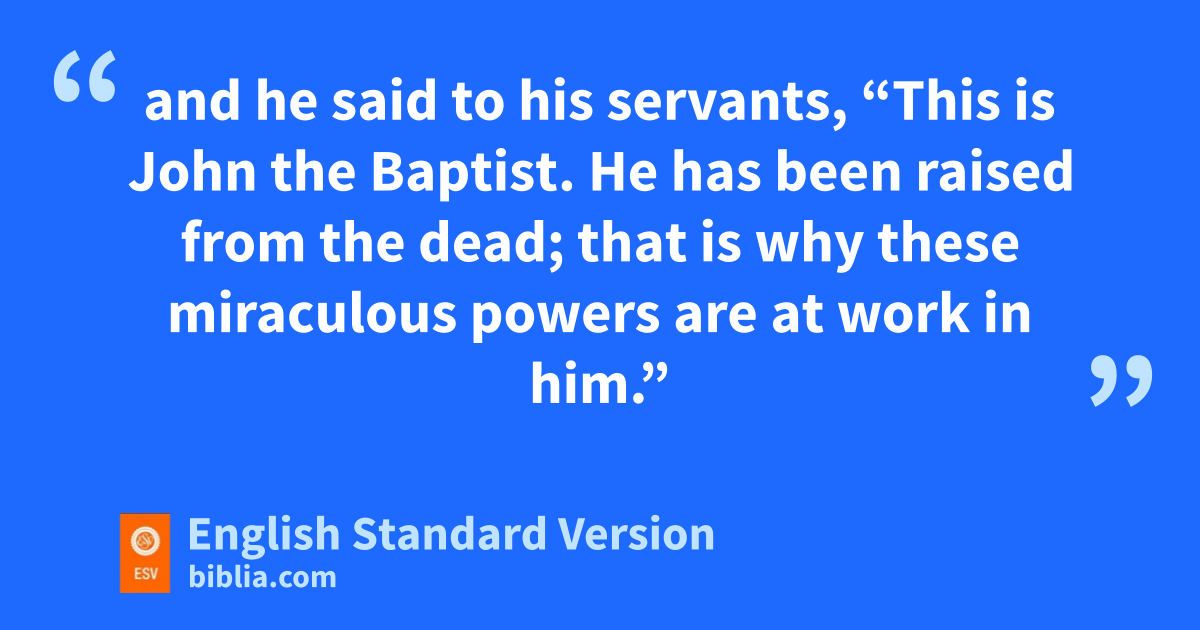 14 vAt that time wHerod the tetrarch heard about the fame of Jesus, 2 and he said to his servants, x“This is John the Baptist. He has been raised from the dead; that is why these miraculous powers are at work in him.” 3 For yHerod had seized John and bound him and zput him in prison for the sake of Herodias, his brother Philip’s wife,1 4 because John had been saying to him, a“It is not lawful for you to have her.” 5 And though he wanted to put him to death, bhe feared the people, because they held him to be ca prophet. 6 But when Herod’s dbirthday came, the daughter of Herodias danced before the company and pleased Herod, 7 so that he promised with an oath to give her whatever she might ask. 8 Prompted by her mother, she said, “Give me the head of John the Baptist here on a platter.” 9 And the king was sorry, but because of his oaths and his guests he commanded it to be given. 10 He sent and had John beheaded in the prison, 11 and his head was brought on a platter and given to the girl, and she brought it to her mother. 12 And ehis disciples came and took the body and buried it, and they went and told Jesus.