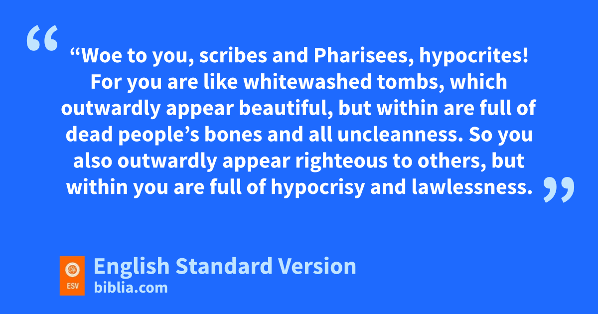 27 n“Woe to you, scribes and Pharisees, hypocrites! For you are like owhitewashed tombs, which outwardly appear beautiful, but within are full of dead people’s bones and pall uncleanness. 28 So you also qoutwardly appear righteous to others, but within you are full of rhypocrisy and lawlessness.