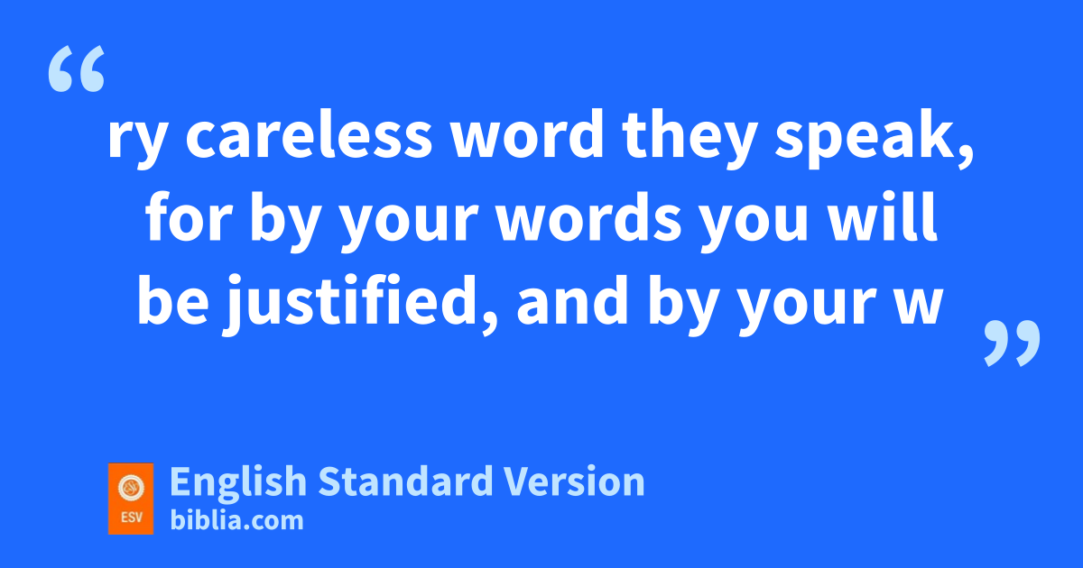 33 n“Either make the tree good and its fruit good, or make the tree bad and its fruit bad, ofor the tree is known by its fruit. 34 pYou brood of vipers! How can you speak good, qwhen you are evil? rFor out of the abundance of the heart the mouth speaks. 35 rThe good person out of his good treasure brings forth good, and the evil person out of his evil treasure brings forth evil. 36 I tell you, son the day of judgment tpeople will give account for uevery careless word they speak, 37 for vby your words you will be justified, and by your words you will be condemned.”