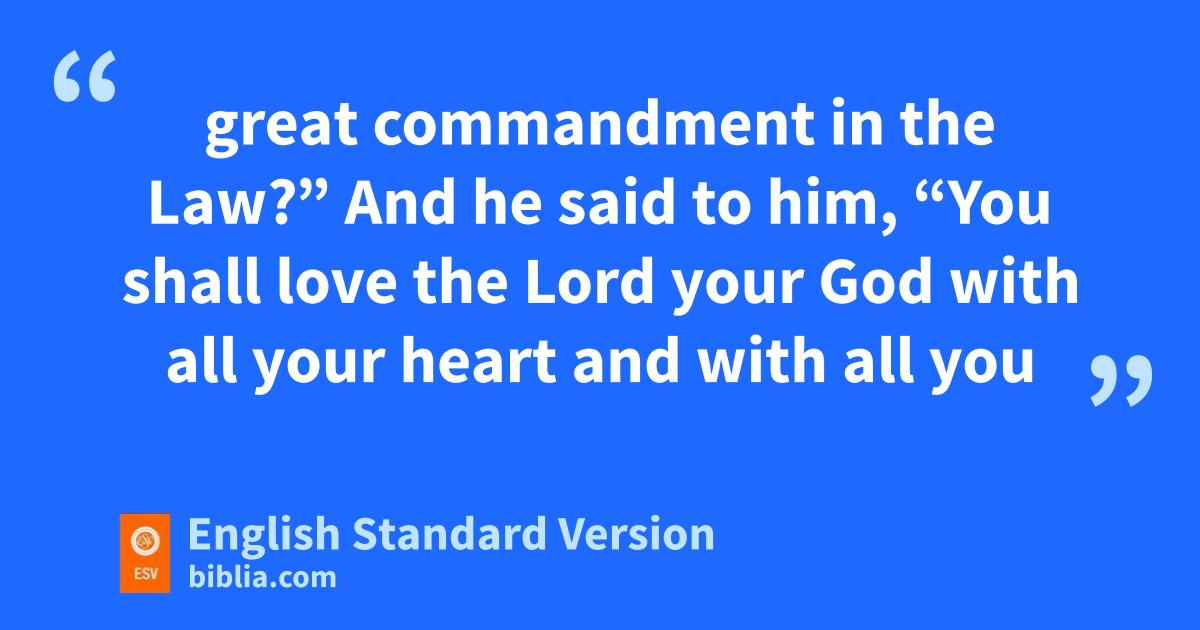 34 bBut when the Pharisees heard that he had silenced cthe Sadducees, they gathered together. 35 dAnd one of them, ea lawyer, asked him a question fto test him. 36 “Teacher, which is the great commandment in the Law?” 37 And he said to him, g“You shall love the Lord your God with all your heart and with all your soul and with all your mind. 38 This is the great and first commandment. 39 And ha second is like it: iYou shall love your neighbor as yourself. 40 jOn these two commandments depend kall the Law and the Prophets.”