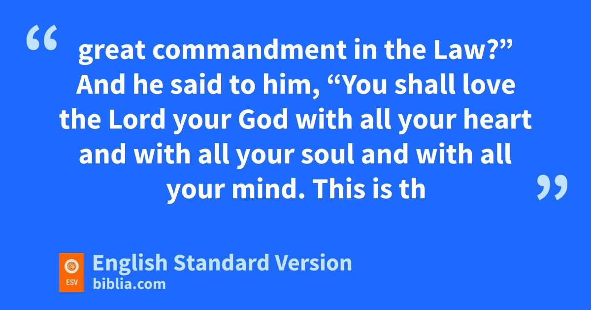 34 bBut when the Pharisees heard that he had silenced cthe Sadducees, they gathered together. 35 dAnd one of them, ea lawyer, asked him a question fto test him. 36 “Teacher, which is the great commandment in the Law?” 37 And he said to him, g“You shall love the Lord your God with all your heart and with all your soul and with all your mind. 38 This is the great and first commandment. 39 And ha second is like it: iYou shall love your neighbor as yourself. 40 jOn these two commandments depend kall the Law and the Prophets.”