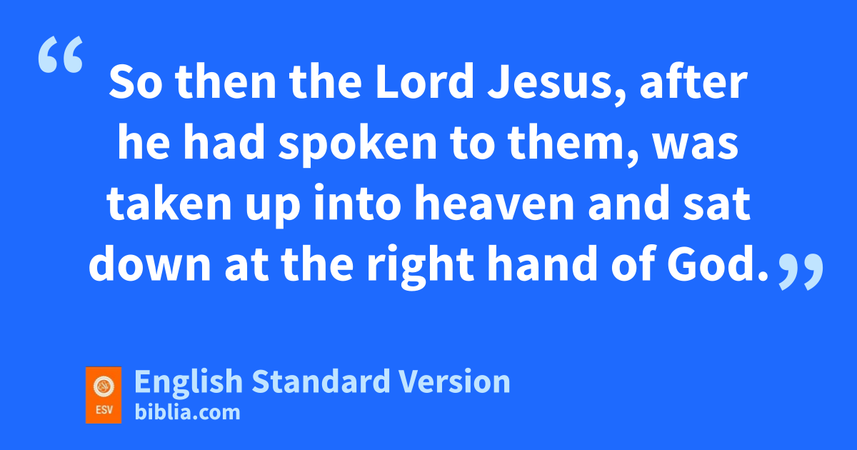 19 So then the Lord Jesus, gafter he had spoken to them, hwas taken up into heaven and isat down at the right hand of God. 20 And they went out and preached everywhere, while jthe Lord worked with them and confirmed kthe message lby accompanying signs.]]