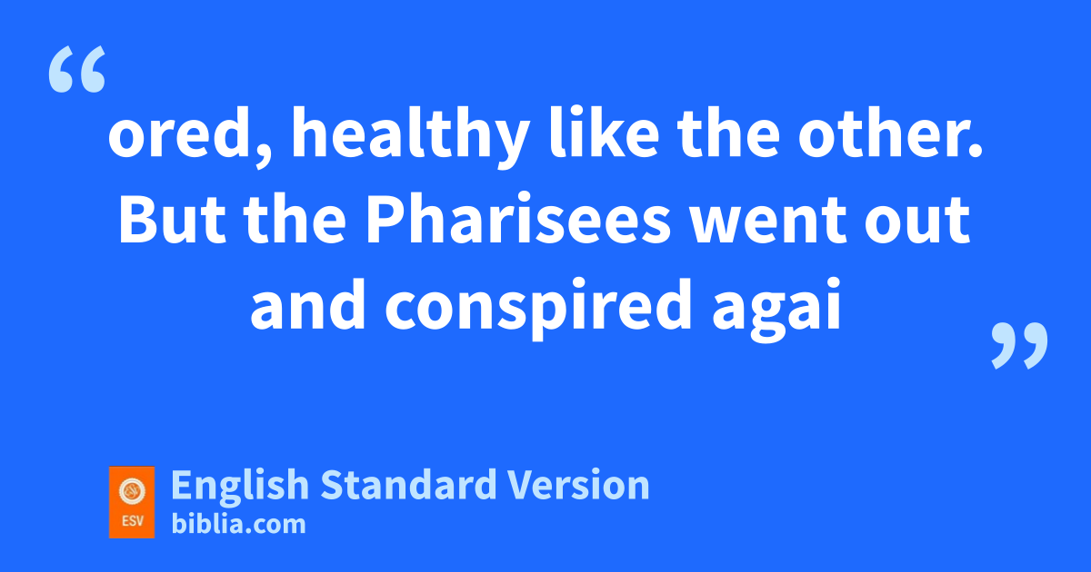 9 He went on from there and hentered their synagogue. 10 And a man was there with a withered hand. And they asked him, i“Is it lawful to heal on the Sabbath?”—jso that they might accuse him. 11 He said to them, “Which one of you who has a sheep, kif it falls into a pit on the Sabbath, will not take hold of it and lift it out? 12 lOf how much more value is a man than a sheep! So mit is lawful to do good on the Sabbath.” 13 Then he said to the man, “Stretch out your hand.” And nthe man stretched it out, and it was restored, healthy like the other. 14 But the Pharisees went out and conspired against him, how to destroy him.
