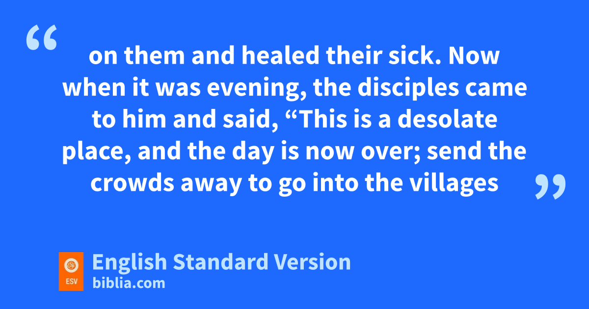 13 Now when Jesus heard this, fhe withdrew from there in a boat to a desolate place by himself. But when the crowds heard it, they followed him on foot from the towns. 14 When he went ashore he gsaw a great crowd, and ghe had compassion on them and healed their sick. 15 Now when it was evening, the disciples came to him and said, “This is a desolate place, and the day is now over; hsend the crowds away to go into the villages and buy food for themselves.” 16 But Jesus said, “They need not go away; iyou give them something to eat.” 17 They said to him, “We have only five loaves here and two fish.” 18 And he said, “Bring them here to me.” 19 Then he ordered the crowds to sit down on the grass, and taking the five loaves and the two fish, jhe looked up to heaven and ksaid a blessing. Then he broke the loaves and gave them to the disciples, and the disciples gave them to the crowds. 20 And they all ate and were satisfied. And they took up twelve baskets full of the broken pieces left over. 21 And those who ate were about five thousand men, besides women and children.